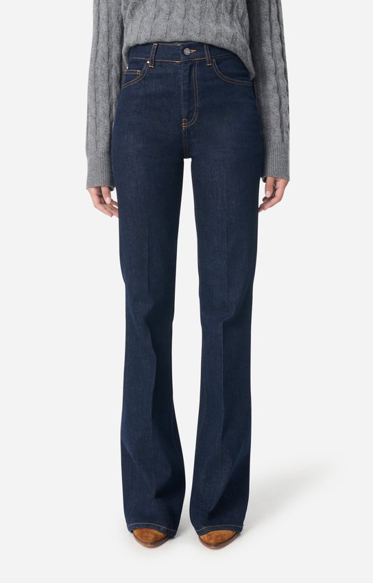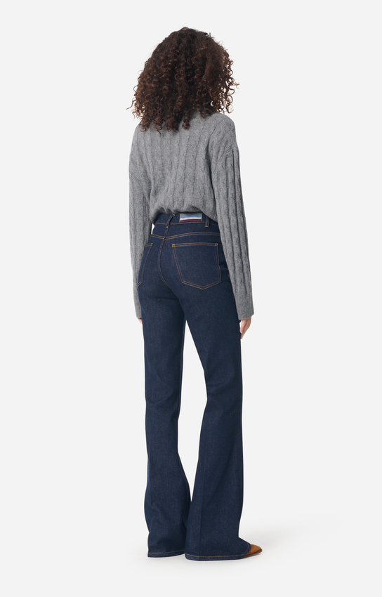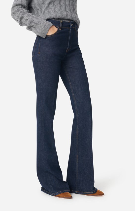 Le jean Ethan offre une coupe évasée élégante, inspirée du style flair vintage, mais toujours moderne. Sa taille haute et ajustée allonge la silhouette. Confectionné en coton, il se porte facilement avec une chemise romantique pour un look décontracté ou un blazer pour une tenue plus sophistiquée. Long, il se marie parfaitement avec des talons pour un effet élancé.