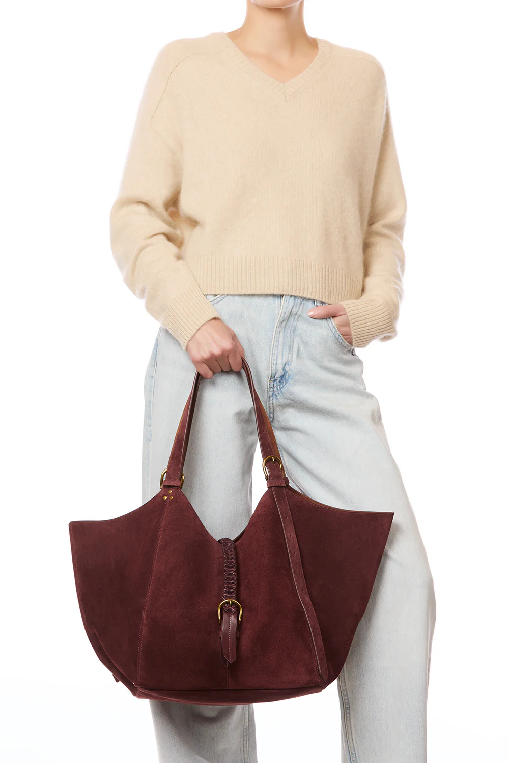 Sac avec poignées réglables de 40 cm à 74 cm permettant un porté à l’épaule ou à la main. Fermeture par une patte centrale tressée à la main. Organisé en un seul compartiment principal avec un poche plaquée intérieure ainsi que d’une pochette accrochée par un lien à l’intérieur.